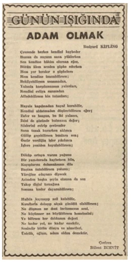 Kipling’in If’i, Bülent Ecevit’in ellerinde “Adam Olmak” a dönüşürken, yalnızca bir çeviri değil, bir kültürel yapı taşı olmuş, ete kemiğe bürünmüş, hayat bulmuş.
